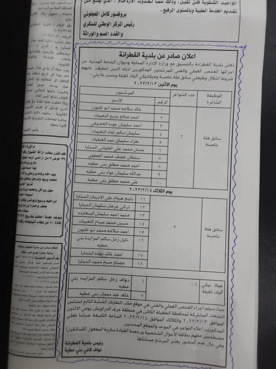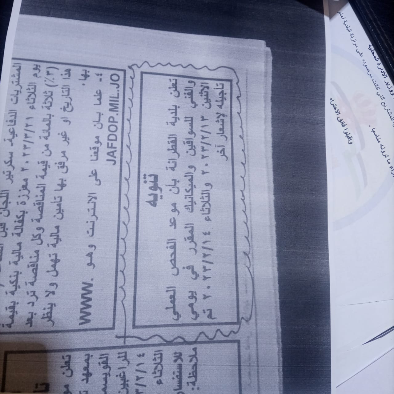 اعلان احاله مبدئية عطاء الخلطة الاسلفتية