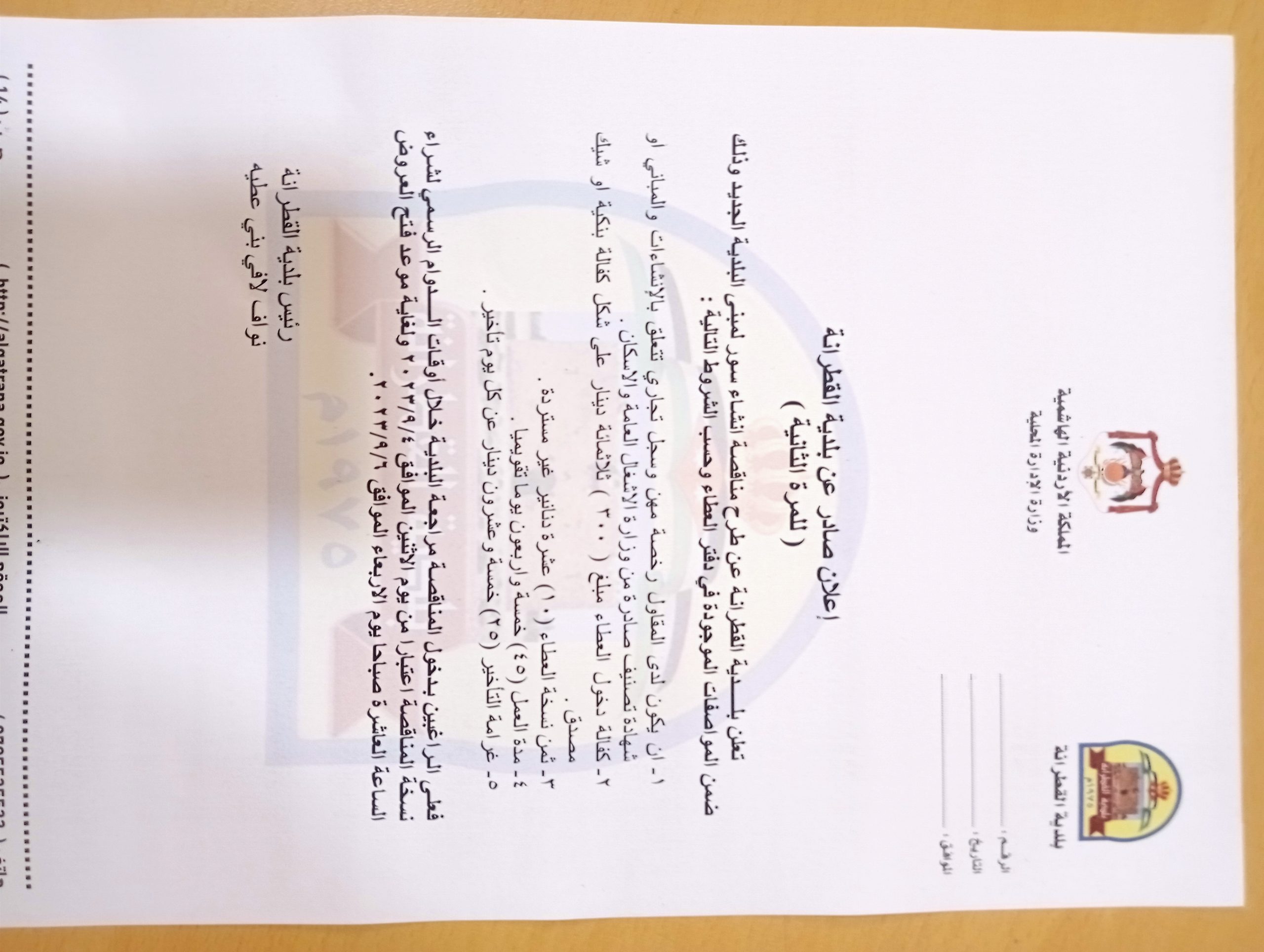 اعلان مناقصة انشاء سور لمبنى البلدية الجديد للمرة الثانية